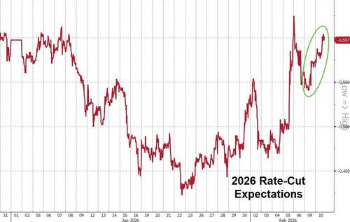同时,货币市场正将今年三次降息25个基点的概率上调至约30%,其中两次降息已完全计入价格——目前定价的年内降息幅度约为60个基点。尽管利率掉期合约仍暗示决策者将在下月会议维持利率不变——正如美联储1月决议投票决定将联邦基金利率目标区间维持在3.5%-3.75%那样。